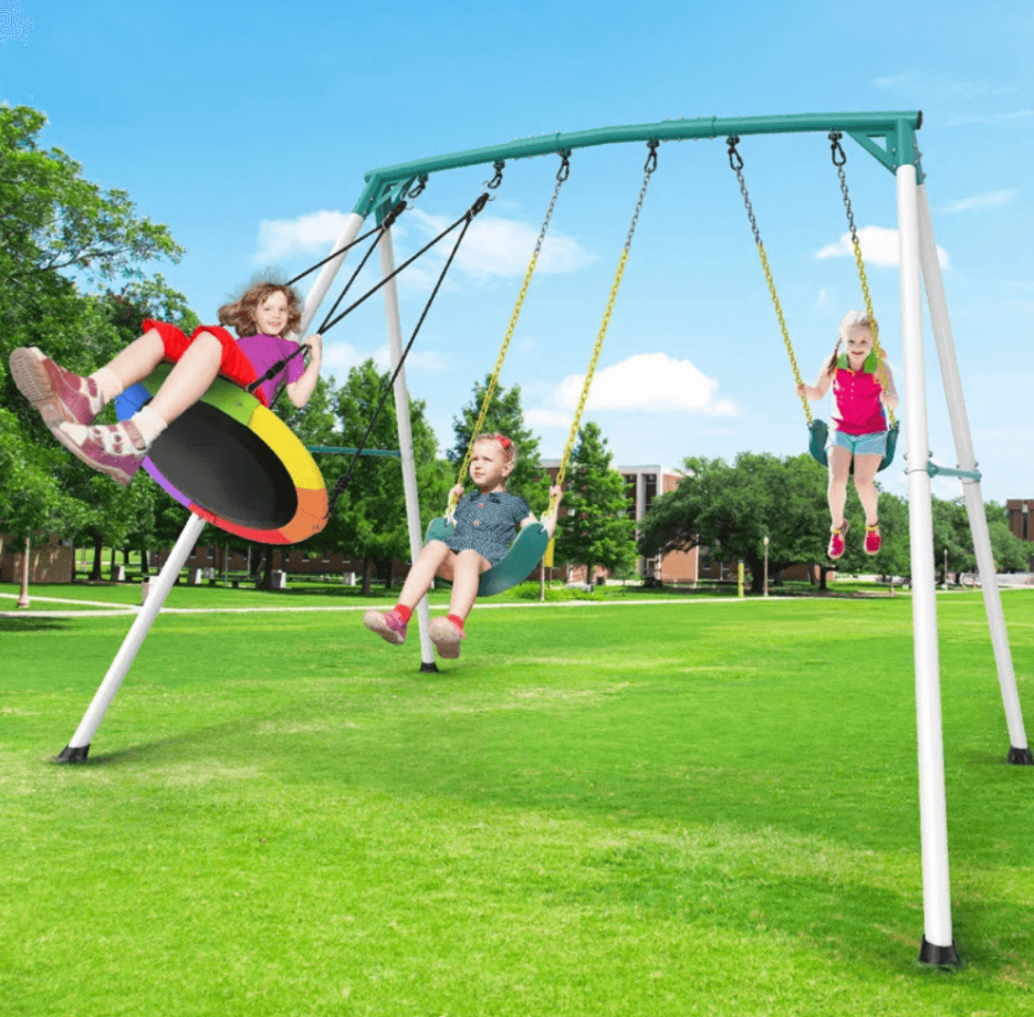 ✔ Three swing stations, including a saucer swing for extra fun