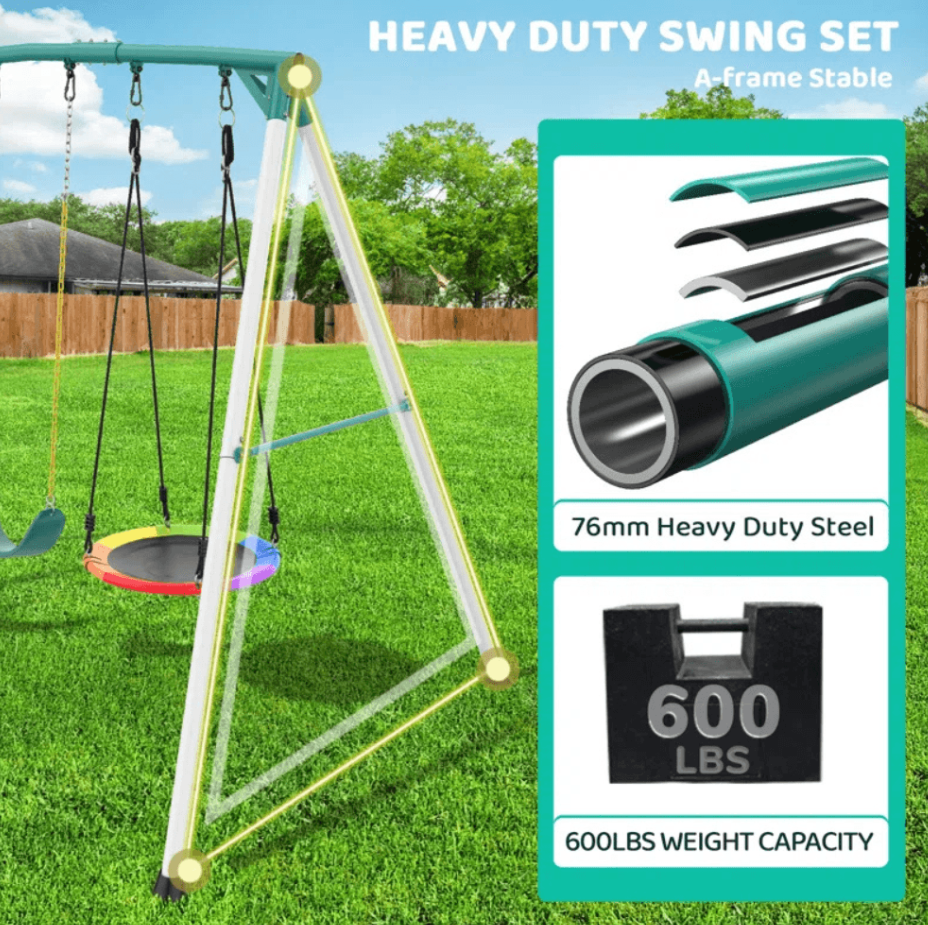 ✔ Heavy-duty metal swing frame