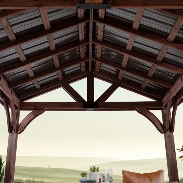 Transform your ordinary outdoor living space with Backyard Discovery’s grand Arlington Gazebo. Made from 100% Cedar wood, the Arlington is naturally resistant to rot and decay while also being a Pro-Tect-certified performance structure. Pro-Tect testing certifies the Arlington to withstand up to 7,886 pounds of weight along with a wind certification of up to 100 mph.