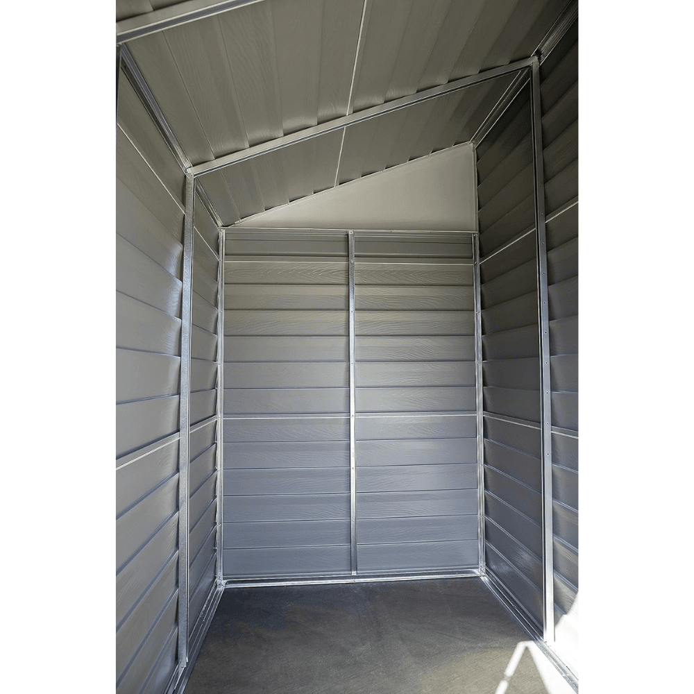 The Arrow 4 ft. x 7 ft. Yardsaver Galvanized Steel Storage Shed is a