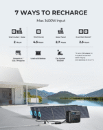 The Bluetti AC200MAX solar generator combines powerful performance and versatility. With a 2200W pure sine wave inverter (4800W surge) and 2048Wh capacity, it can handle various devices with ease. It includes a 350W solar panel for efficient solar charging, reducing power loss even in low-light conditions. Featuring 16 outlets, including 30A NEMA TT-30 and 12V 30A DC ports, it’s ideal for home backup, camping, or RV use. Expandable up to 8192Wh with additional batteries, it offers a reliable, eco-friendly power solution.