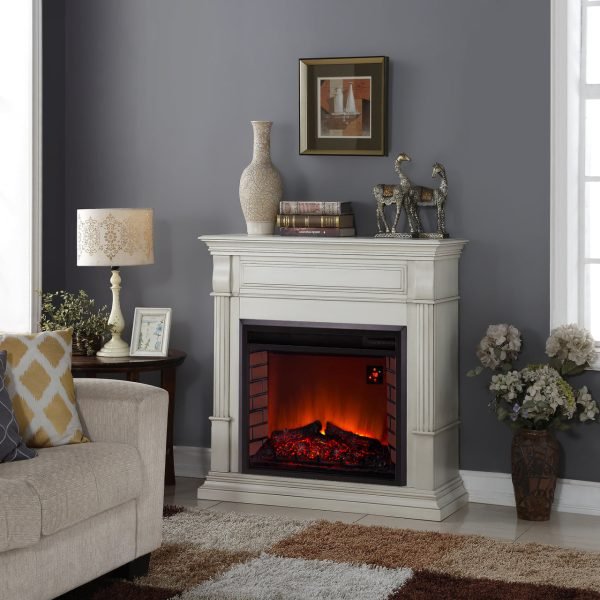 Duluth Forge Full Size Electric Fireplace – Remote Control, Antique White Finish – Model# EL1350-2-AW