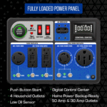 50 Amp Plug for Home Backup: Connects directly to your home via a transfer switch to provide whole-home power backup.