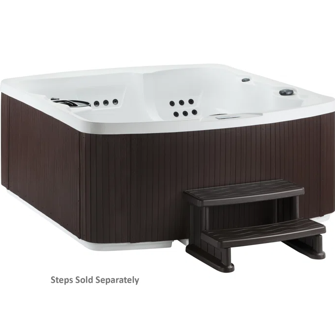 The Leganza by Lifesmart Spas is a 230V, 90-jet hot tub designed to bring the ultimate spa experience to your backyard. With comfortable lounge seating and space for up to 6 adults, this premium spa features a relaxing waterfall, multi-color underwater LED lighting, and a durable faux-wood exterior for a stylish, modern look.