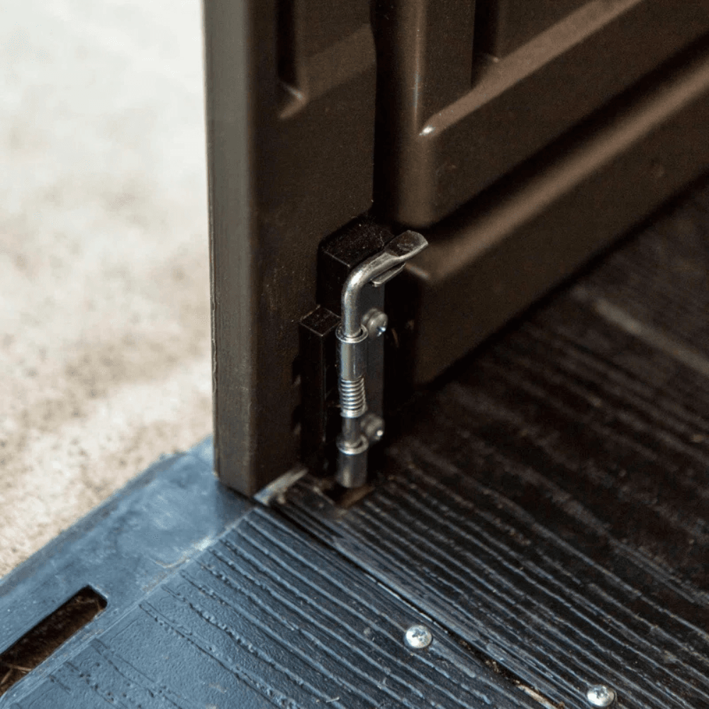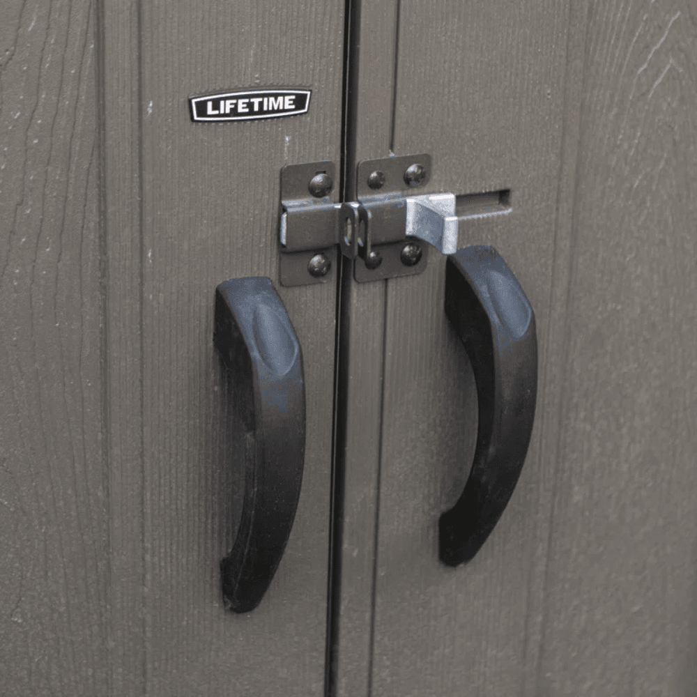 - Rust- and corrosion-resistant locking door handle for added security (lock not included).