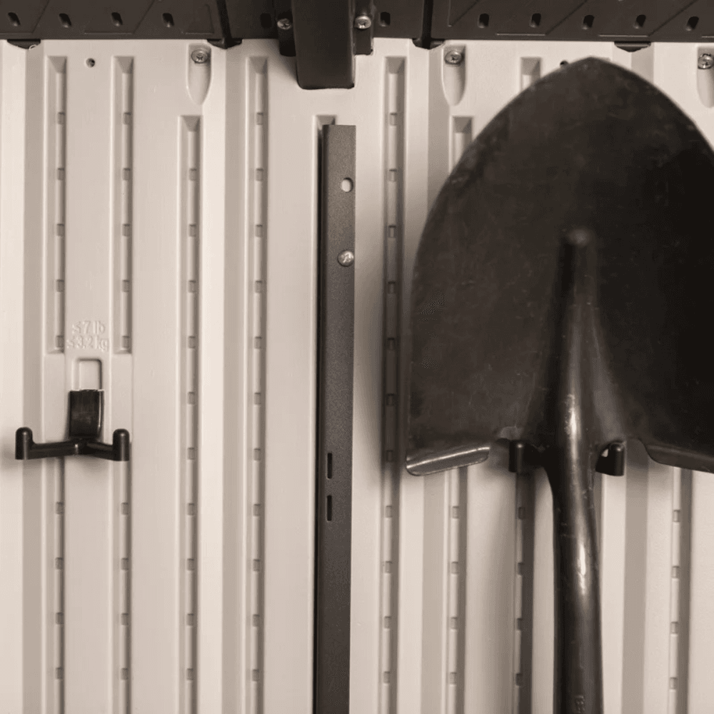 - 90 square feet of storage space for lawn equipment, tools, bikes, patio furniture, and more.