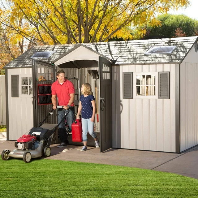 Organize your outdoor space with the Lifetime 15′ x 8′ Side Entry Shed—a practical, weather-resistant, and stylish storage solution for any backyard!