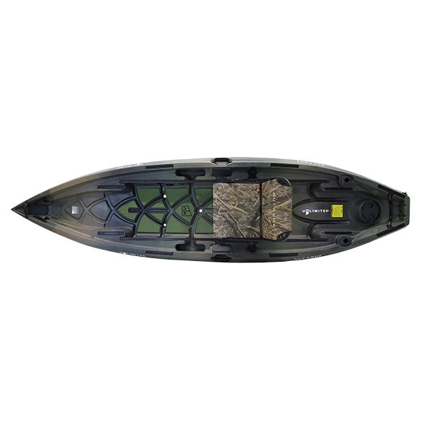 In the UNLIMITED… yes you can. The 2026 Unlimited was designed to blow through obstacles and give you control. A solid open deck with unlimited rig-ability. A remarkable hull design that is fast AND stable, prepared for any waters. Plug & Play ready for pedals, power, and electronics. The UNLIMITED takes you to the future of kayak fishing and hunting.