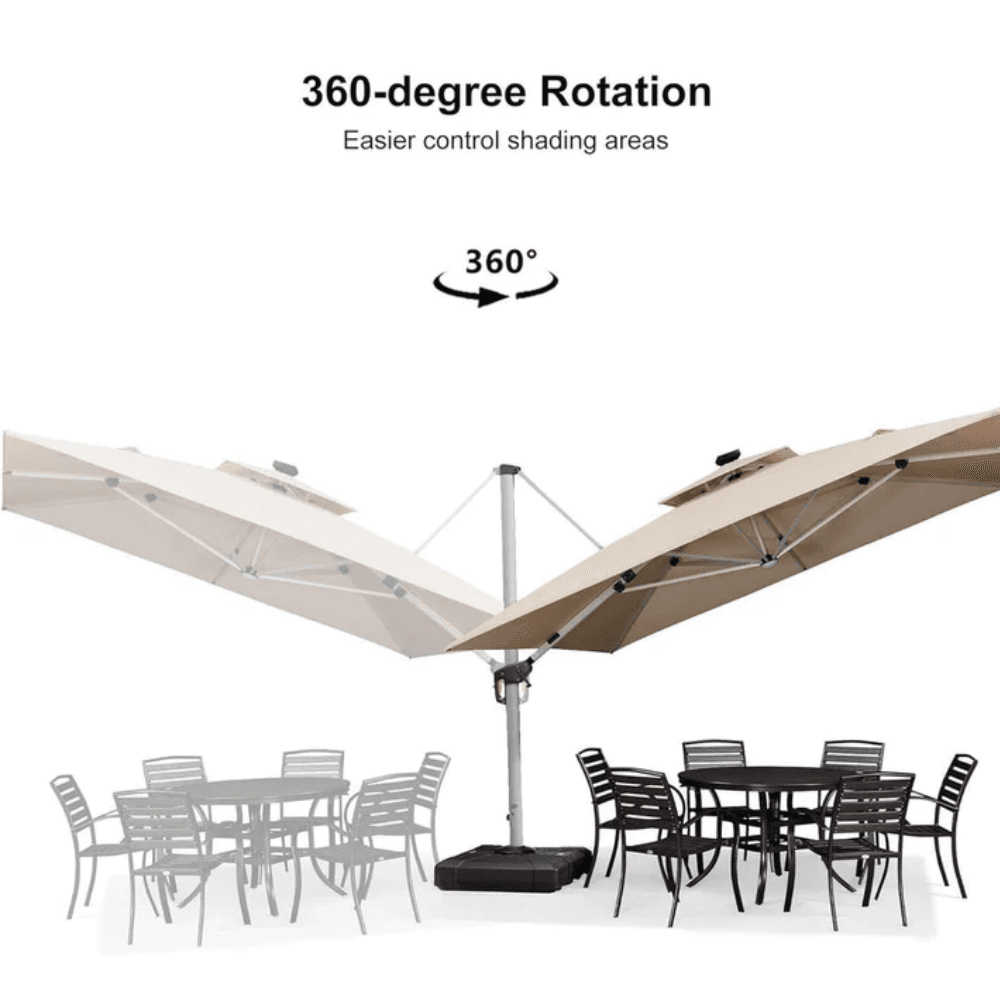 PURPLE LEAF Double Top Deluxe Solar Powered LED Square Patio Umbrella