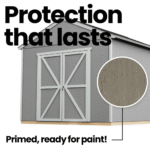 Factory-primed wood siding is ready for painting, allowing you to match your shed to your home’s aesthetic.Add shingles of your choice to complete the roof and enhance weather resistance (paint and shingles sold separately).