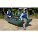 375fc FoldCat Deluxe Package Includes: 375fc FoldCat Hull, Two Green Swivel Seats, River Oar Set, Two Scotty Rod Holders, Two Quick Release Seatmounts, Green Boat Carry Bag, Oarlock Set, A41 Foot Pump, Set of 2 Oarlock Pins, 7″ Pedestal, Repair Kit.