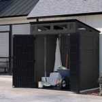 The Suncast 5′ x 6′ Modernist® Storage Shed is a stylish, durable, and practical solution for any backyard. Whether you’re organizing tools, bikes, or lawn equipment, this shed delivers compact functionality with modern aesthetics.