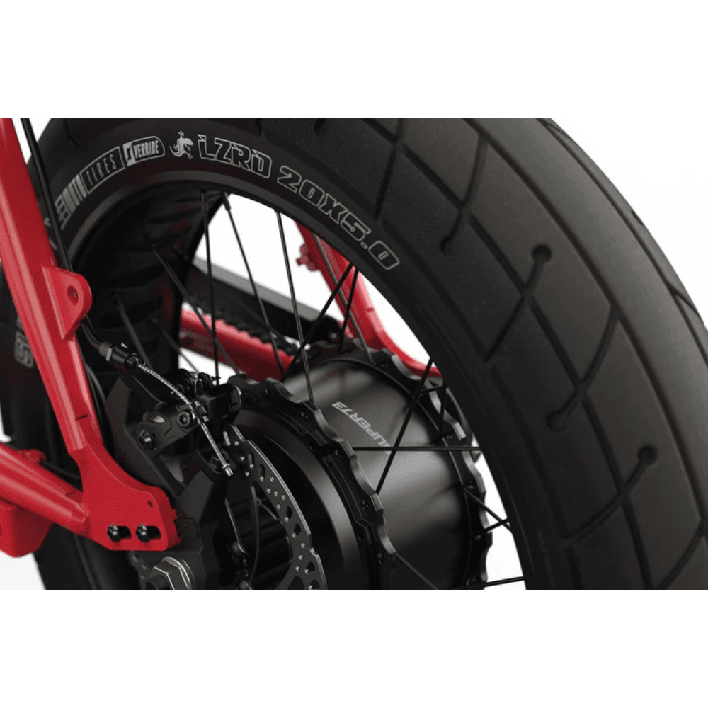 - Other Finishes (Obsidian, Metallic Aluminum, Prickly Pink, Sriracha): LZRD tires, 4.5″ front / 5″ rear