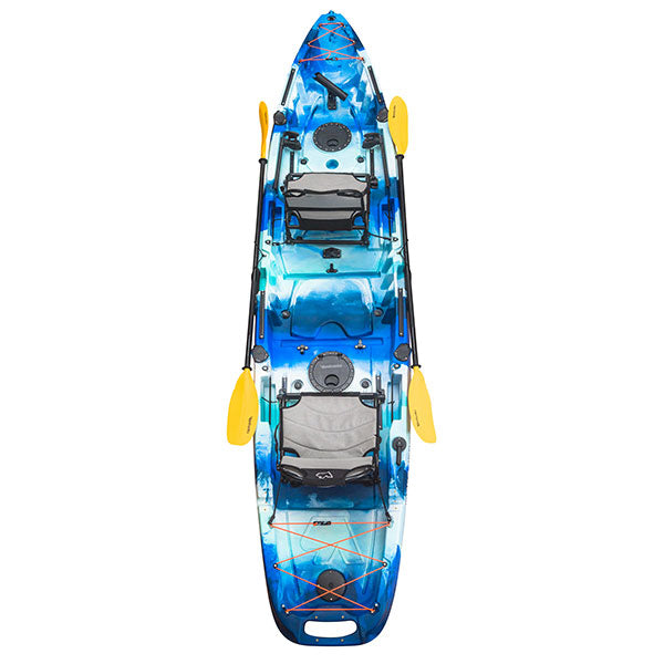 The Orca is our largest capacity kayak with the ability to paddle both as a Tandem or a Solo fishing kayak. The Orca fishing kayak is unrivaled with all its characteristics. Space, versatility, maneuverability, acceleration, adaptability, responsiveness, stability, tracking, and the list still goes on when describing this predator.